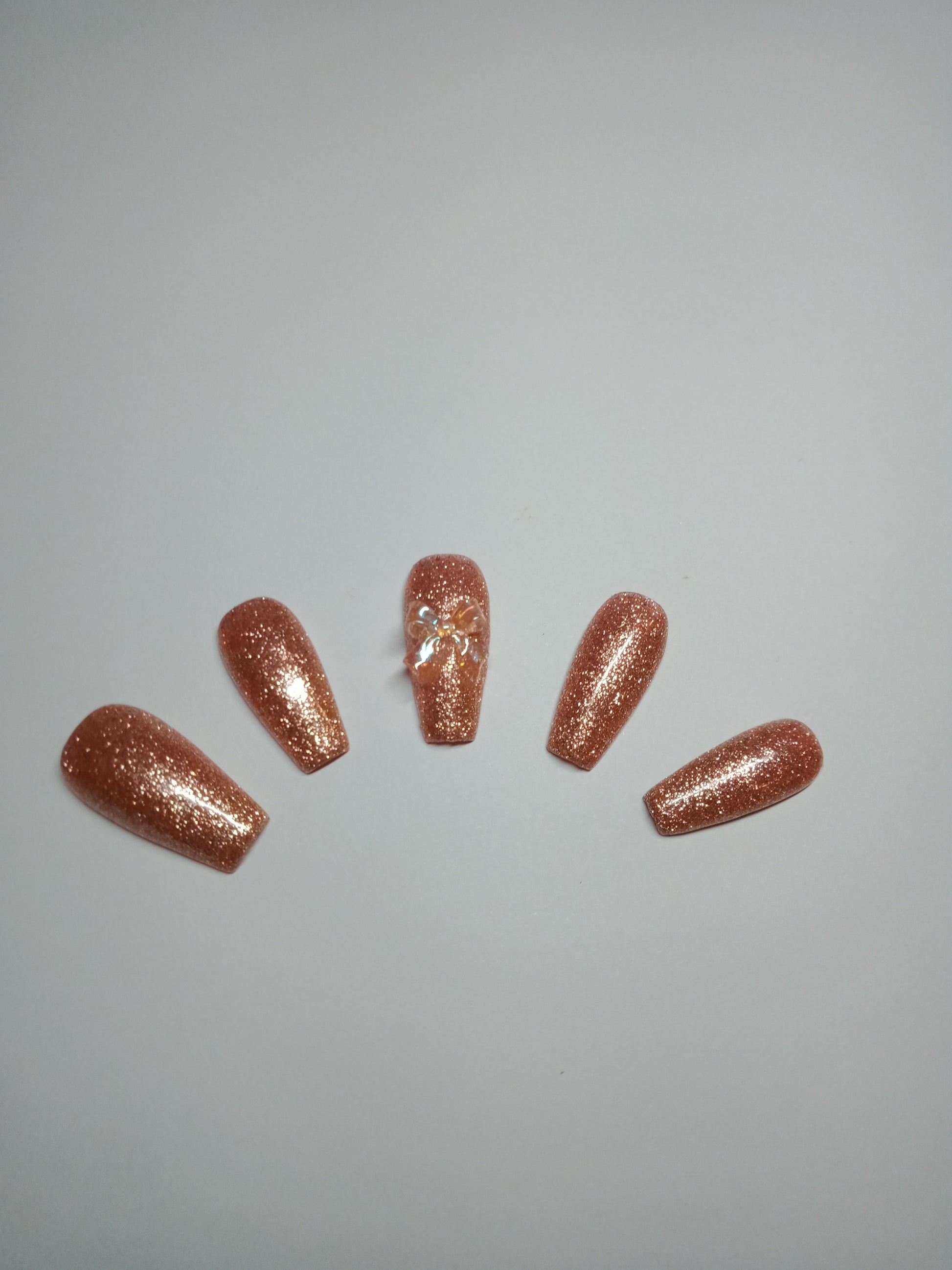Call Me Pretty is a bronze shimmer with an iridescent bow charm.
