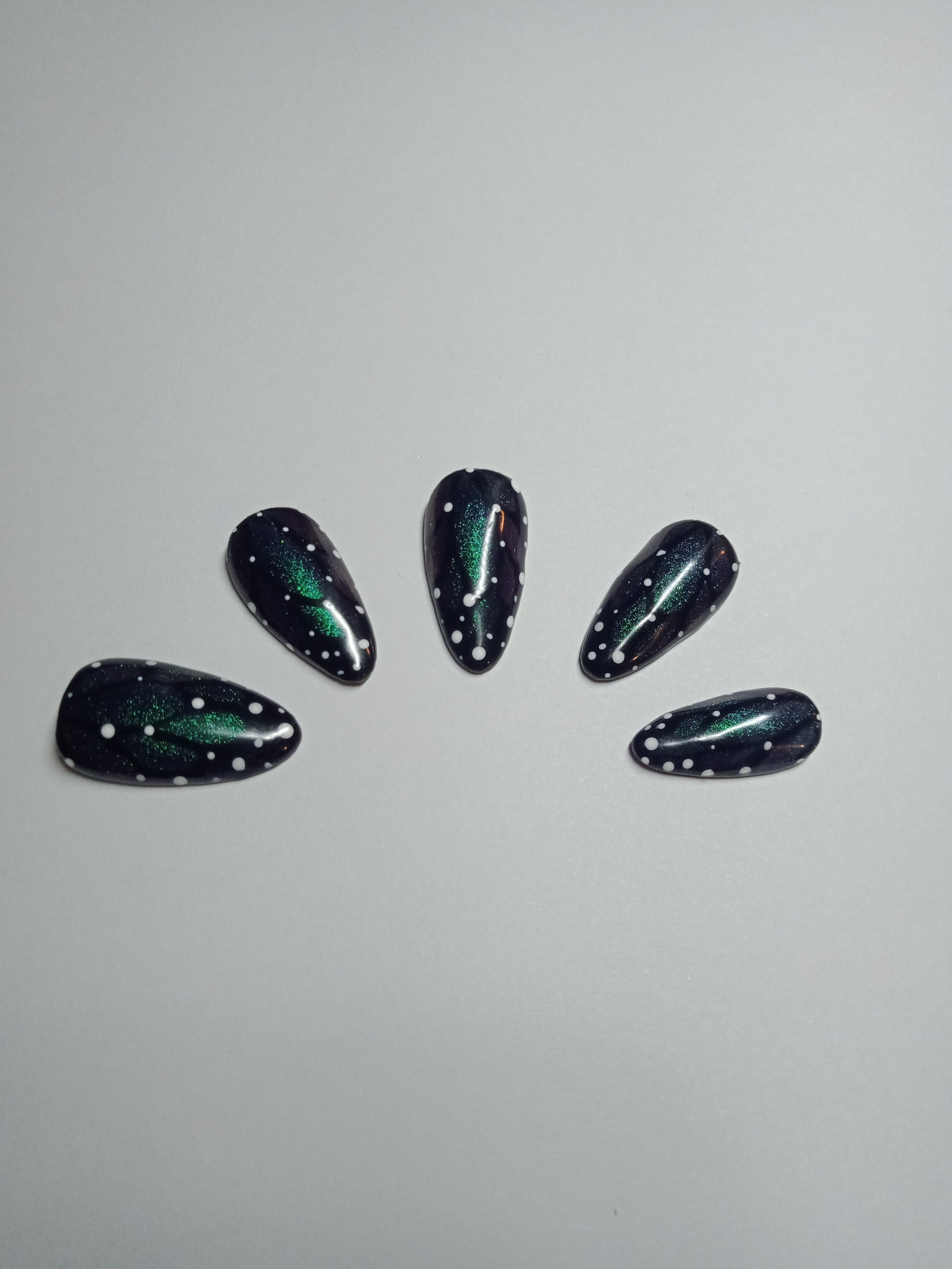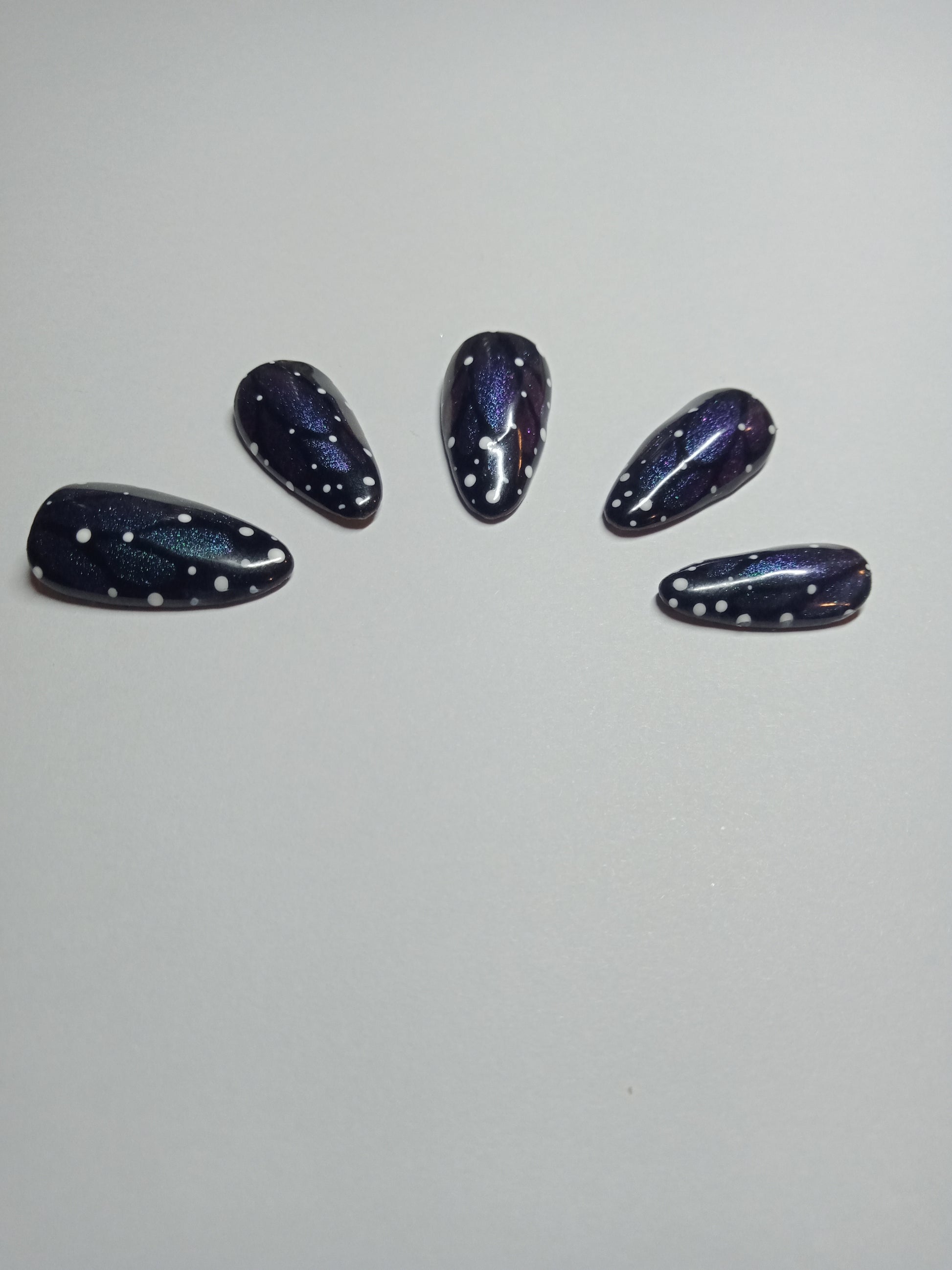 Multi-Chrome Butterfly is a multi-shifting chrome from purple to blue and even green with black lining and topped with white dots.